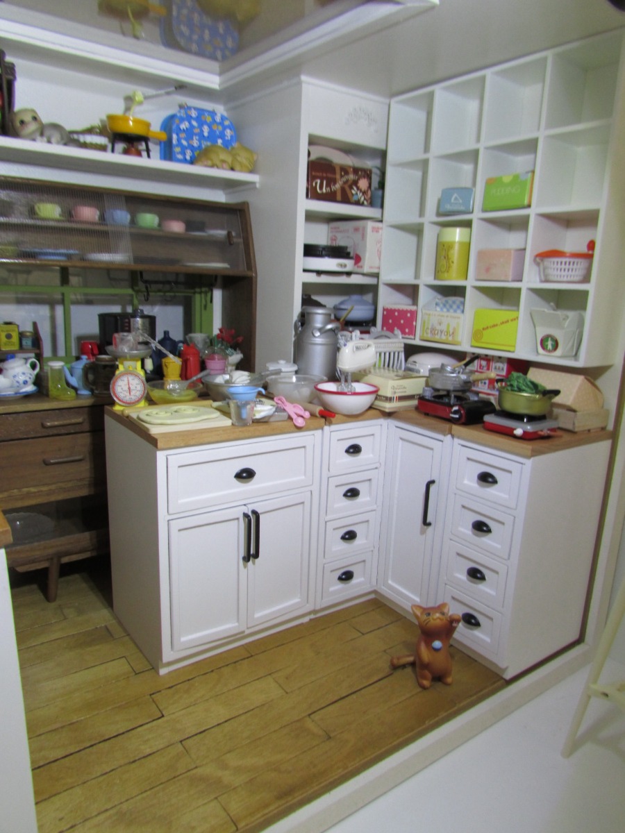 이제 따로 업로드 하기가 귀찮다. 어제 결국 룸박스로의 이사를 감행한 미앤하우스 주방가구 세트~낙찰은 감자공방 룸박스1번! 물론 내가 원하는 구조는 좀 어렵게 됐는데 수납공간이 많아서 딱이다. 내가 만들었던 화장대와 기타등등 구성은 감자공방 룸박스2로 이사하게 되었다. 얼결에 인형들도....ㅋ