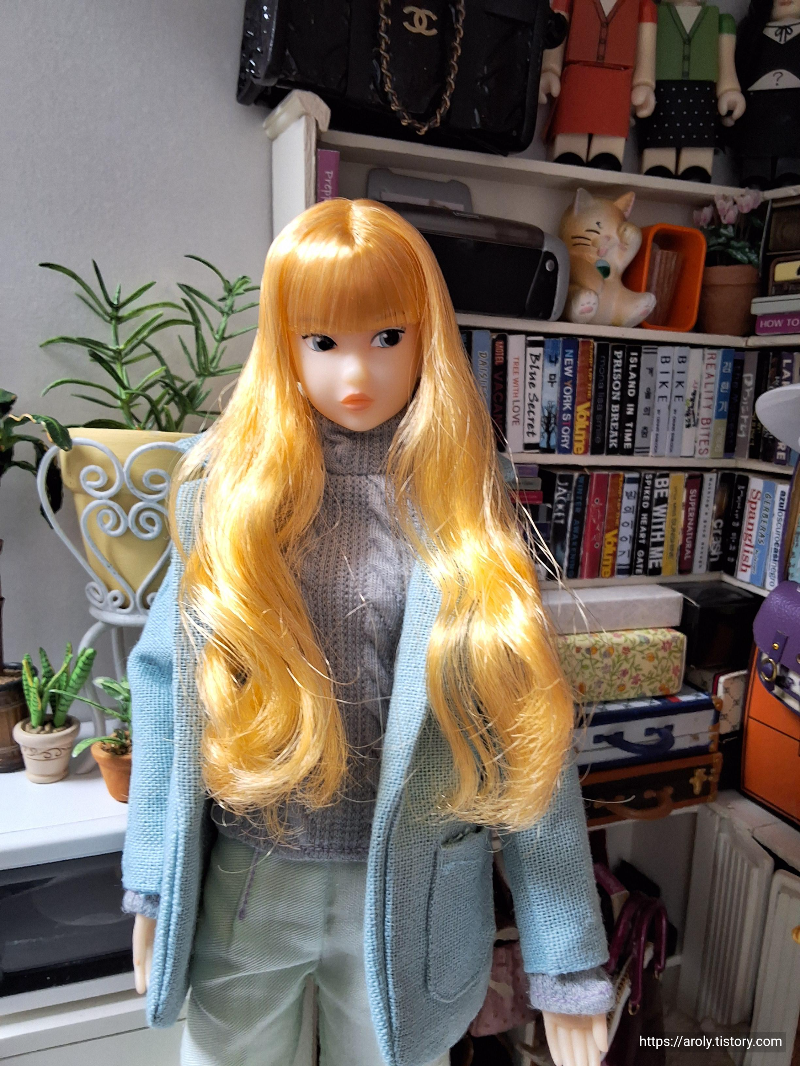 어제 자켓 만들고 1610이 입혀놨던 자켓 금목서에게 입혀봤는데 넘 예뻐서 그대로 뒀다가 좀전에 한 번 찍어봤다. 머리가 좀 부스스 해지긴 했는데 머리 내리니까 또 넘 예쁨. 금목서는 사랑이야....진쫘.... 숏컷 할까 했는데 노노 이대로 굽실굽실 거리는 머리여도 딱 좋다.