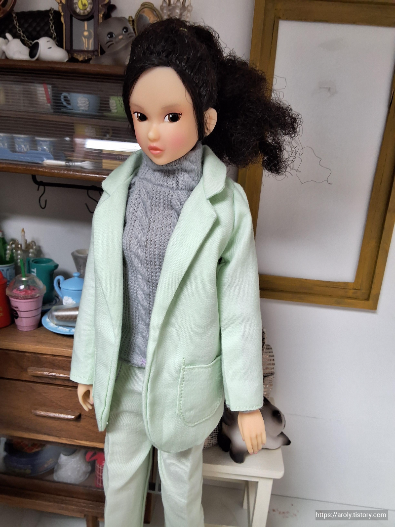 트렌치 코트 만든 이후 의상이 남아(?)서 갈아입힌 기념으로 어제 밤에 찍었던 사진.