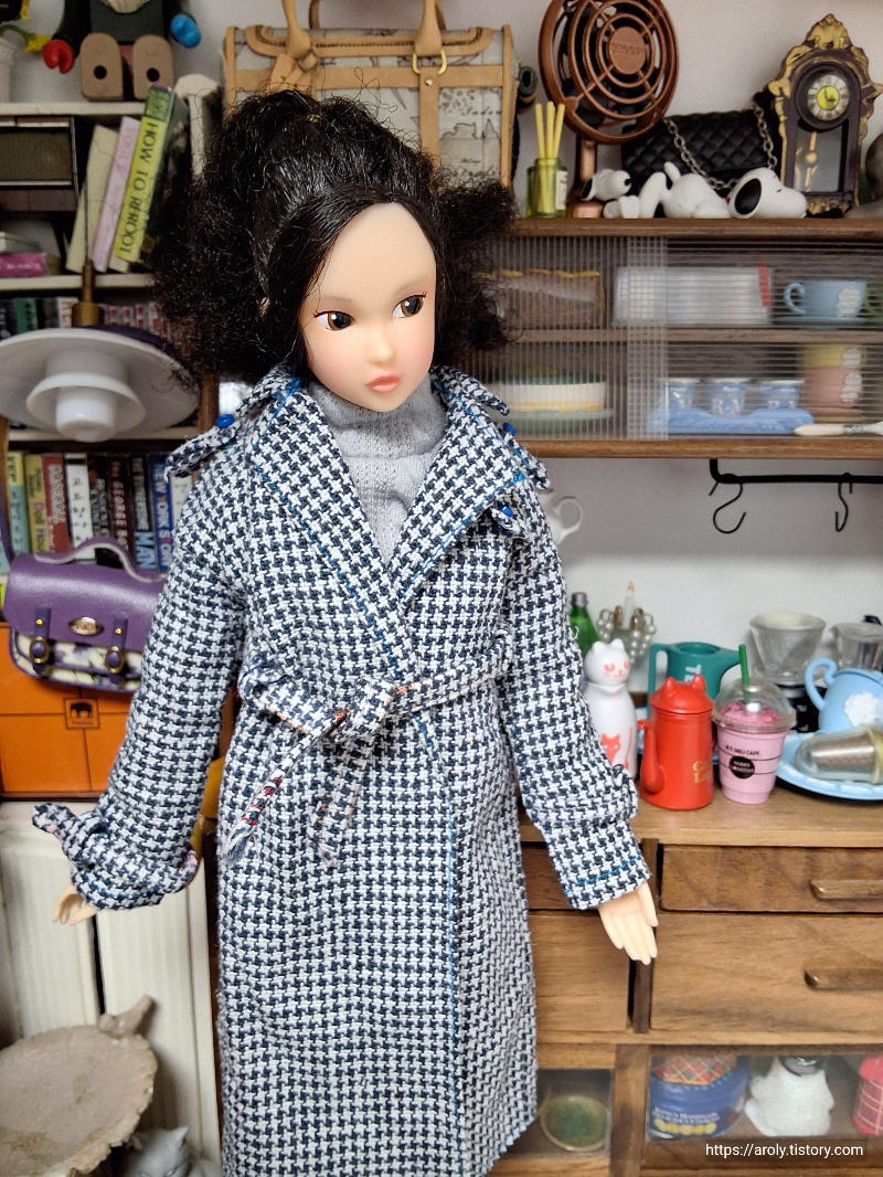 어쨌든 이 패턴은 뭐랄까 만들기 어렵지 않은 편 같다. 디테일이 너무 많아서 고통이긴 한데(단추 벨트 크윽), 핏도 괜찮고 안감 없다는 점만 아쉽지 괜찮은 듯. 돌코디11에 있는 안감 있는 건 복사는 겨우 200%짜리 성공했는데 과정샷 없어서 시도를 못 하겠음. 끄읔
